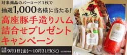 - 【秋元食品】 高座豚手造りハム詰合せプレゼントキャンペーン