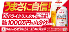- 【アサヒビール】 うまさに自信!新ドライクリスタルを飲んでレシートで応募!抽選で総額1000万円分山分けキャンペーン