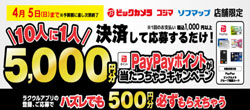 - 【ビックカメラ、コジマ、ソフマップ】 10人に1人5,000円分当たっちゃうキャンペーン